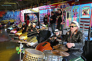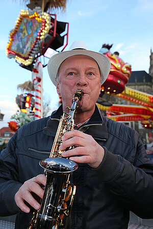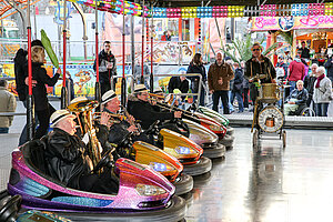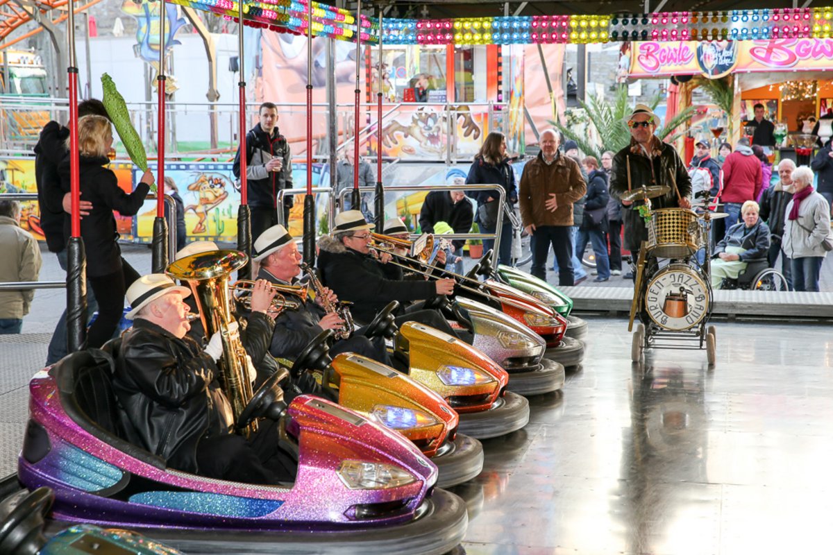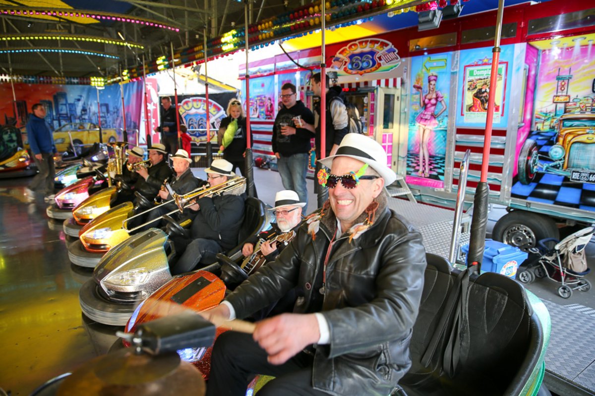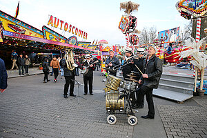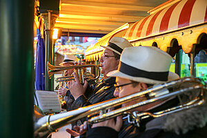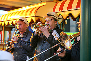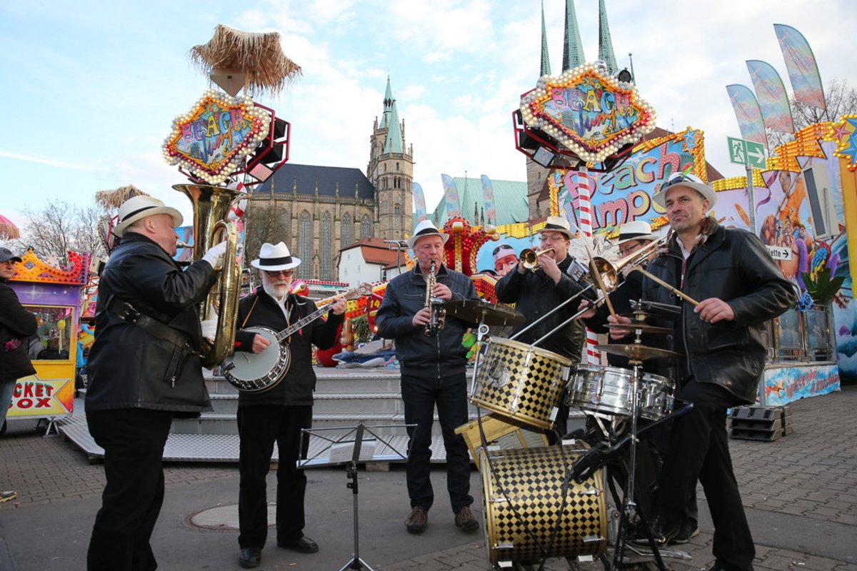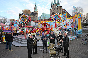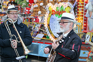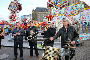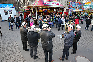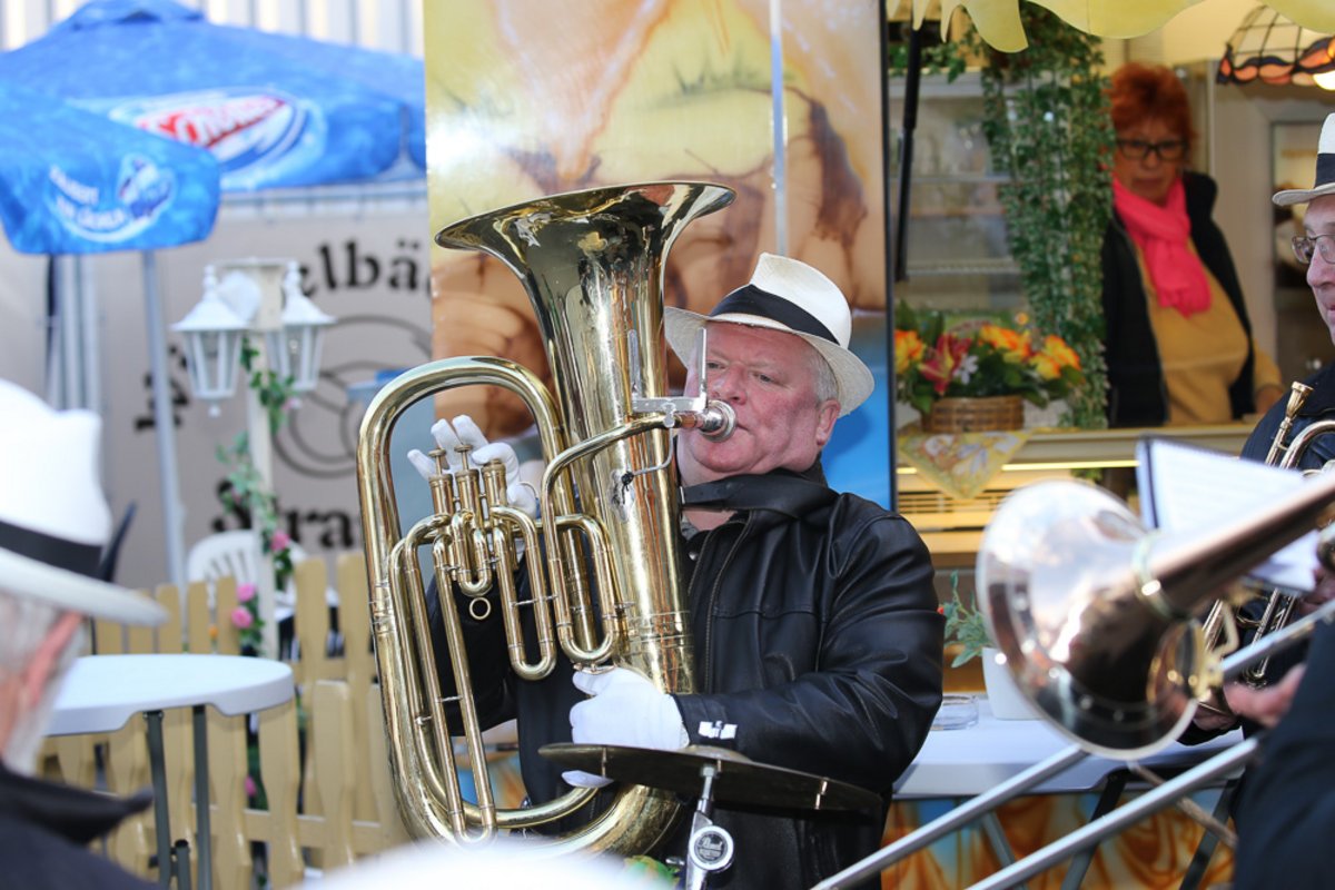 Die Burgen Jazz Band unterhält zum Ostersonntag und Ostermontag die Gäste des Altstadtfrühlings mit ihrer Musik, die so manchen Besucher zum zuhören und mitttanzen inspiriert.