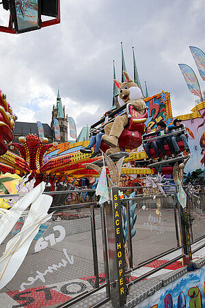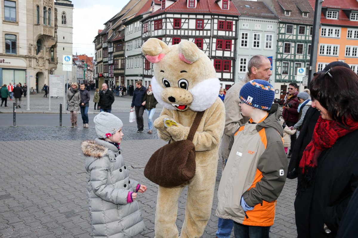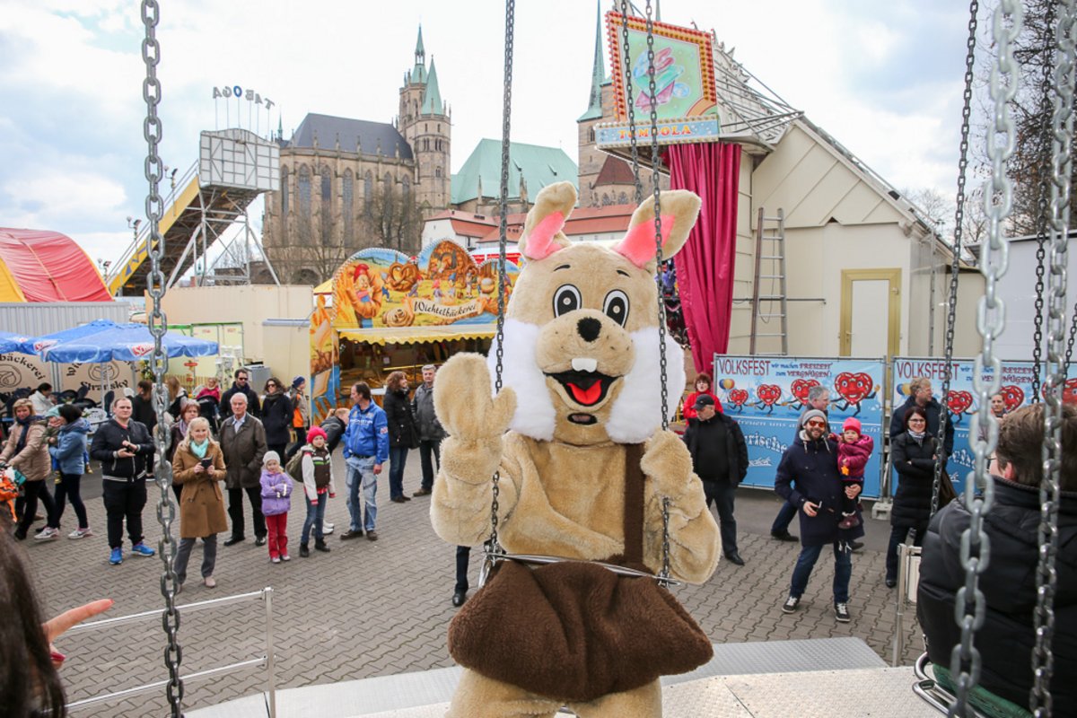 Auch in diesem Jahr besucht uns der Osterhase am Ostersonntag und Ostermontag auf dem Erfurter Altstadtfrühling. Gern nutzt er die zahlreichen Attraktionen und lädt Klein und Groß zum mitfahren ein. Natürlich hat er wieder seine große Tasche dabei mit kleinen Überraschungen um Kindern eine Freude zu machen.