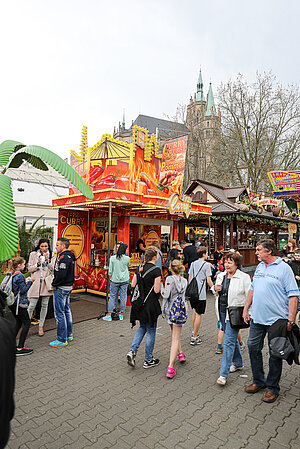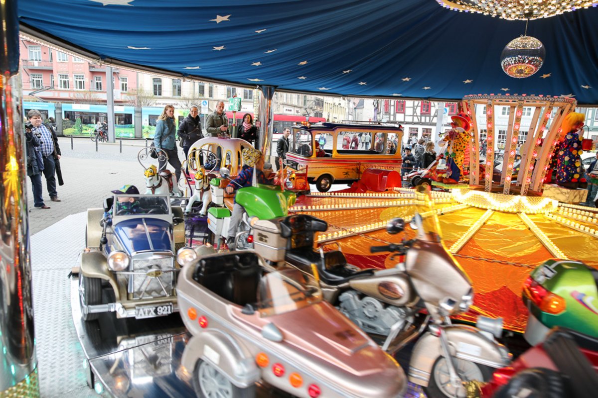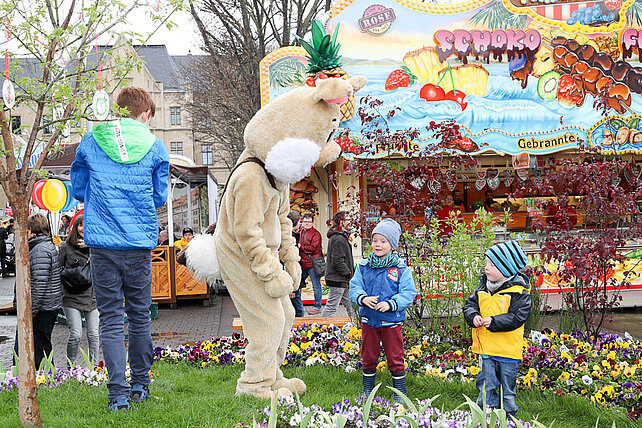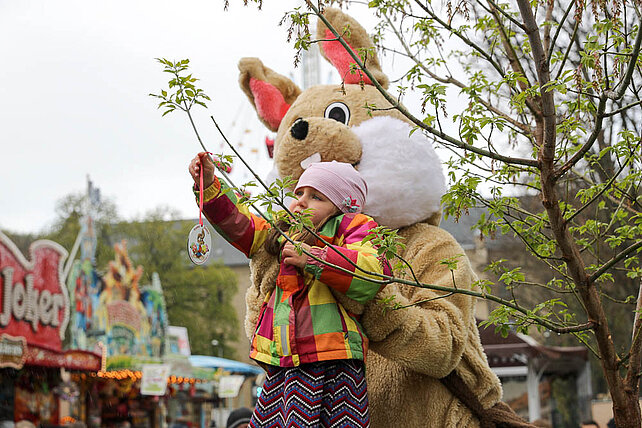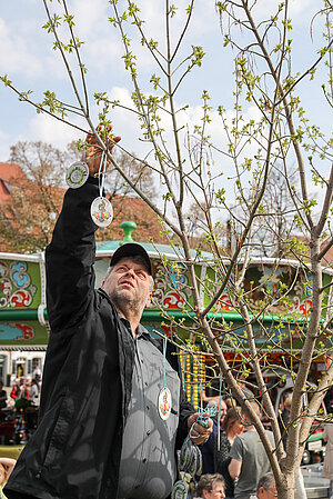 Am Eingang zum Altstadtfrühling, von der Marktstraße aus, steht das Erste mal unser Ostereier-Baum. Wenn der Osterhase zum Altstadtfrühling über den Platz hoppelt, werden viele bunte Fahrchips am Baum hängen, die dann mit dem Osterhasen zusammen gepflückt werden dürfen. Diese Fahrchips und Wertbons zu 2 € werden auch durch den Osterhasen am Ostersonntag in der Zeit von 14 - 17 Uhr und am Ostermontag von 13 - 16 Uhr verteilt.