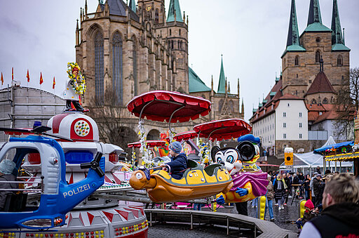 Auch wenn das Wetter nicht immer so sehr schön ist, lohnt ein Besuch des Erfurter Altstadtfrühling. Wie man sieht, kann man auch bei Regen seinen Spaß haben.