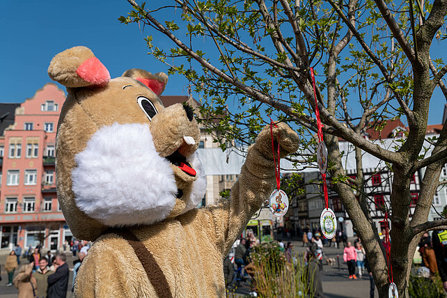Am Ostersonntag war der Osterhase auf dem Domplatz und verteilte seine Ostereier.